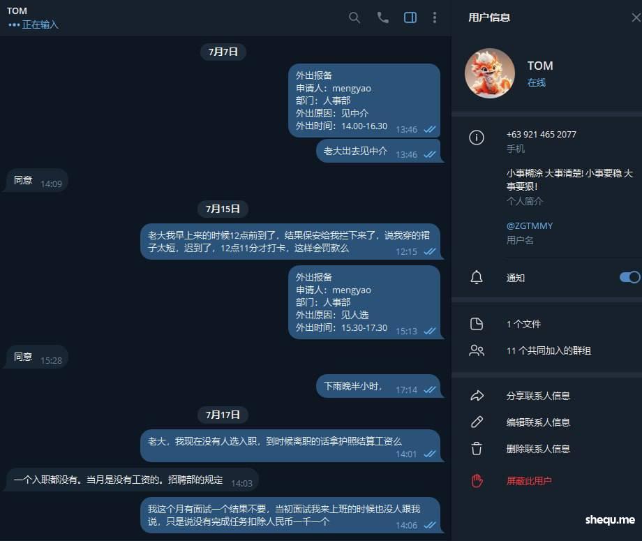 就那个叫TOM胖子老大说什么自己简称总监来着,那时候我在岗位上班他就说过一句只要是离职的护照都会押着故意拖延时间不给员工,拖你十天半个月的,公司是真的他妈的坑,自己上任了还把我们之前的老大开了,各种理由讨好老板想让自己上位